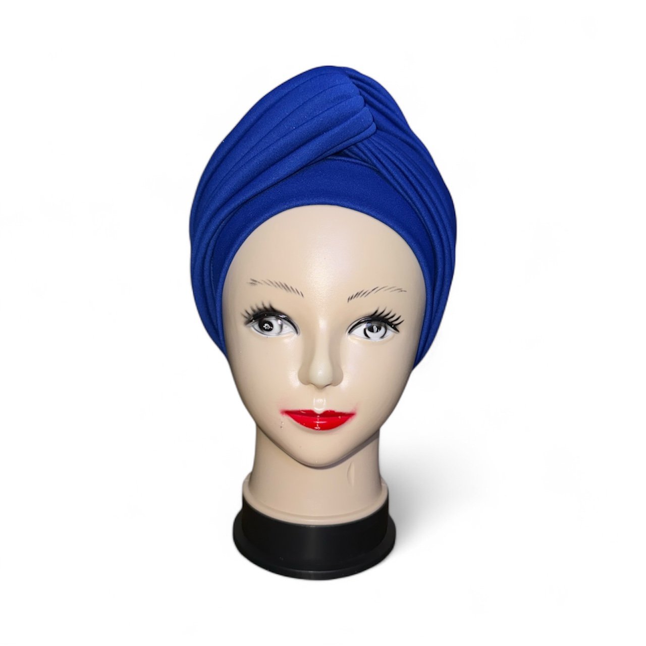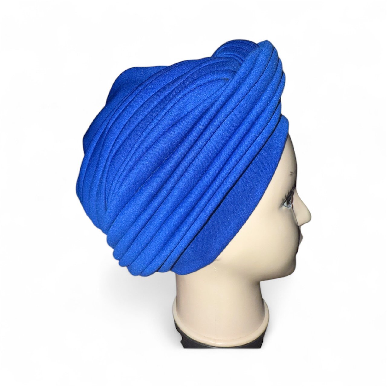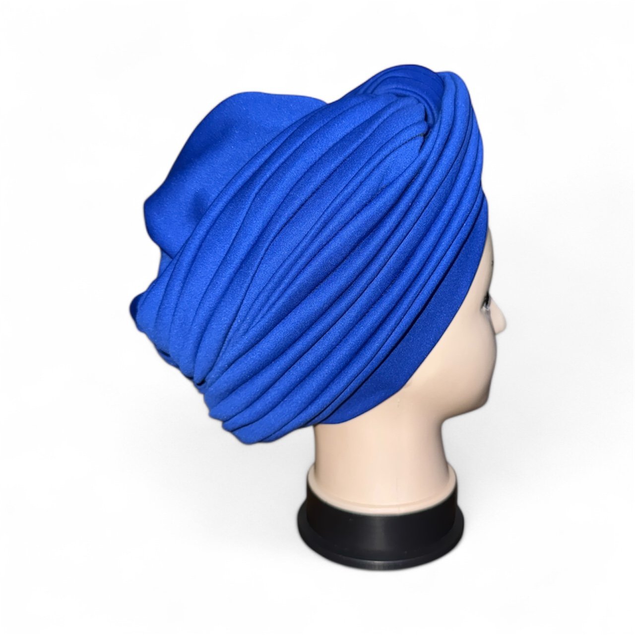 Pleated twist turban: soft, stretchy jersey you just slip on—no pins, no fuss. Full coverage with flattering pleats for instant polish and all-day comfort (one size fits most). Also available in pink and orange.